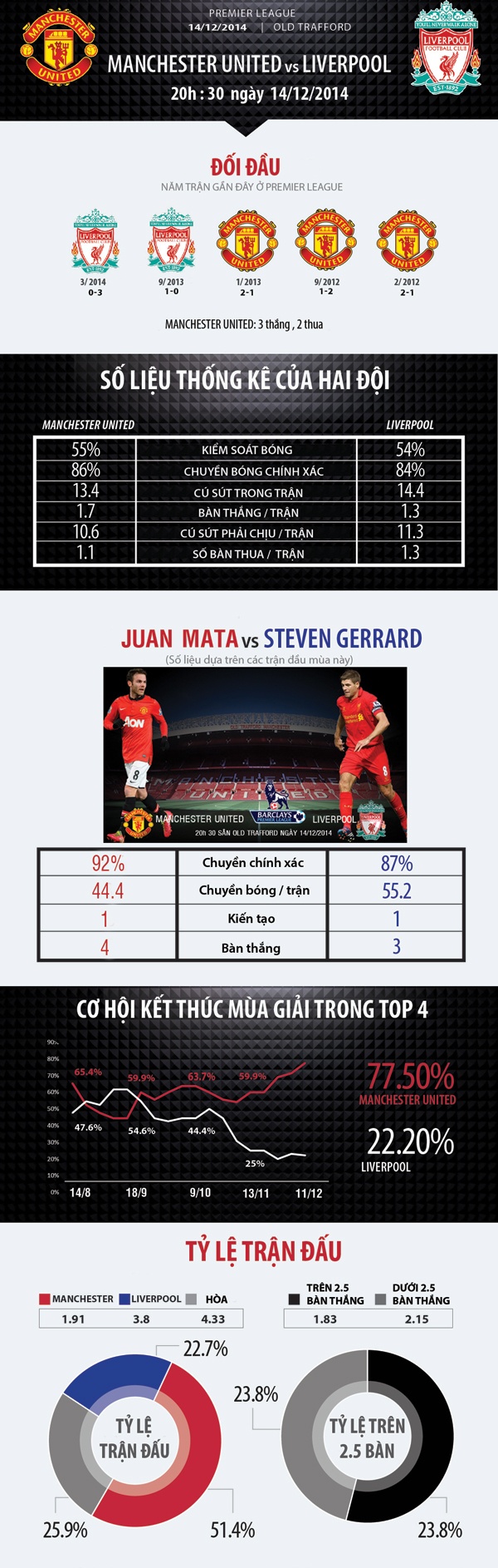 M.U gây ấn tượng với 5 chiến thắng liên tiếp để leo lên vị trí thứ 3, còn Liverpool có nguy cơ rơi xuống nửa dưới bảng xếp hạng nếu thua trận lúc 20h30 trên sân Old Trafford.