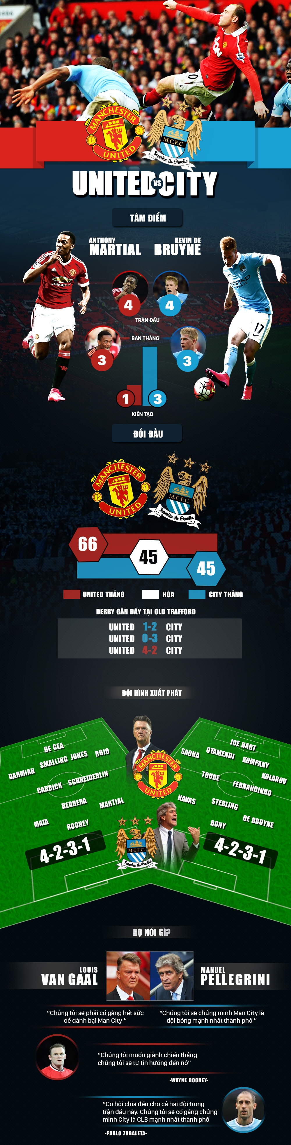 Hai đội đều tuyên bố muốn giành chiến thắng để khẳng định vị thế ở Manchester. MU thống trị bóng đá Anh nhiều năm trước, còn Man City dần trở thành thế lực mới tại xứ sở sương mù.