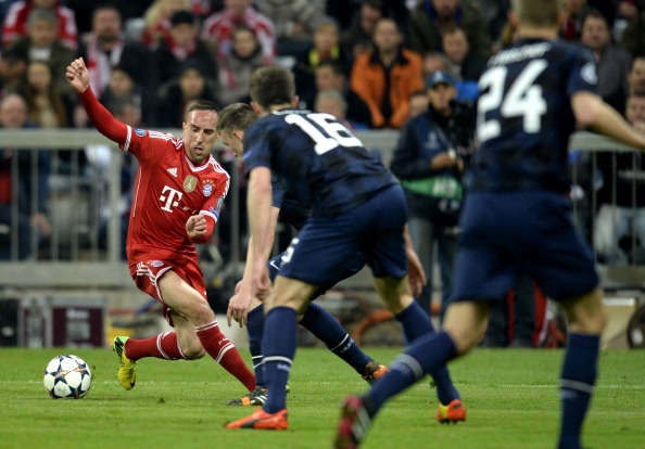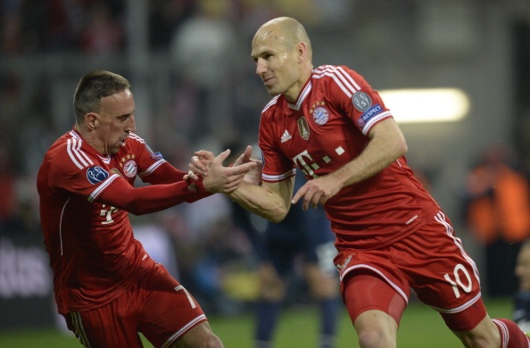 Robben kết liễu M.U bằng cú dứt điểm đưa bóng chạm chân Vidic bay vào lưới ở phút 77.