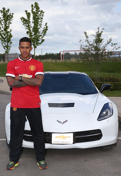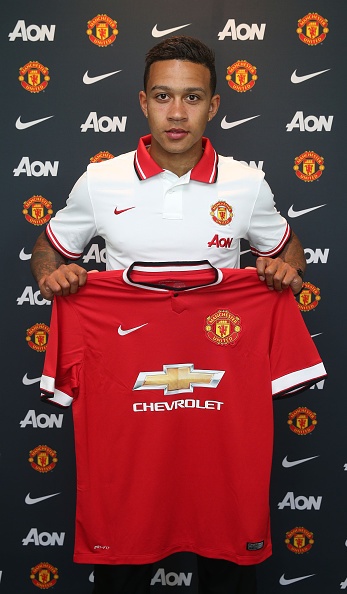 | Memphis Depay vui mừng chụp với áo đấu của đội bóng mới Manchester United. HLV Van Gaal chia sẻ: "Tôi biết Memphis từ khi làm việc cùng nhau ở đội tuyển quốc gia Hà Lan. Cậu ấy là một cầu thủ đa năng và có khả năng chơi nhiều vị trí". |