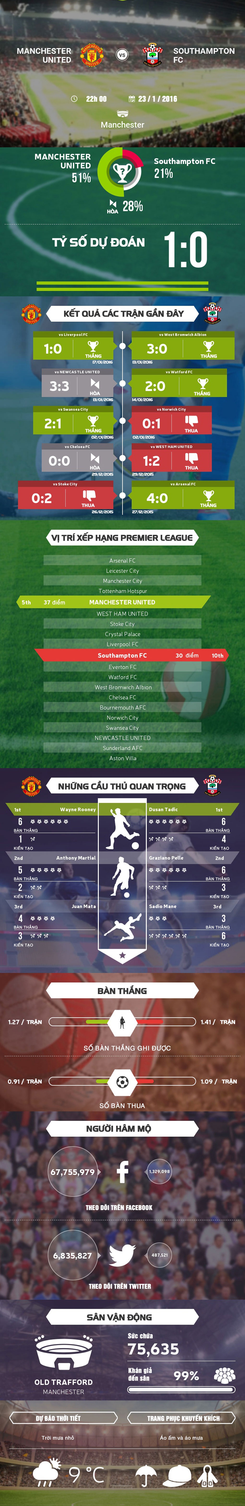 Tiền đạo Wayne Rooney ghi bàn 4 trận liên tiếp gần đây ở mọi giải đấu. Nhờ phong độ chói sáng của anh, MU hoàn toàn có cơ hội sớm trở lại top 4 nếu đánh bại Southampton lúc 22h.