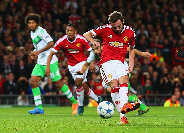 Không chấp nhận trận thua thứ hai liên tiếp ở bảng B Champions League mùa này, MU liên tục gây áp lực cho khung thành Wolfsburg. Trên hàng công “Quỷ đỏ” ở trận này, Juan Mata thi đấu nổi bật nhất. Anh đem về quả penalty cho MU ở phút 34. Sau cú dứt điểm của Juan Mata, Caligiuri để bóng chạm tay trong khu vực 16m50. Anh chính là tác giả của cú sút 11 m thành công gỡ hòa 1-1 cho đội chủ sân Old Trafford.