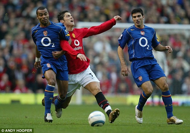 | Vieira (phải) là thủ quân nổi tiếng của Arsenal. Anh vô địch Premier League ba lần cùng Pháo thủ. Từ năm 1999 đến 2004, anh lọt vào đội hình tiêu biểu của PFA. Ngoài ra, cựu tiền vệ người Pháp còn thi đấu cho Man City. Sau khi chia tay sự nghiệp cầu thủ vào năm 2011, anh trở thành HLV của đội trẻ Man xanh. |