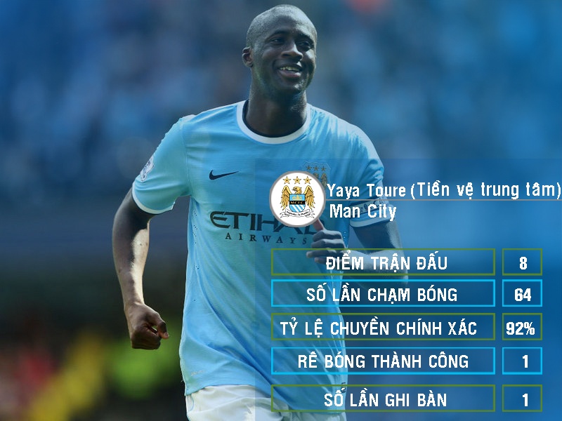 Ở tuổi 32, tiền vệ người Bờ Biển Ngà vẫn thể hiện phong độ ổn định. Anh đóng góp 1 pha lập công vào chiến thắng 4-1 của Man City trước Sunderland. |