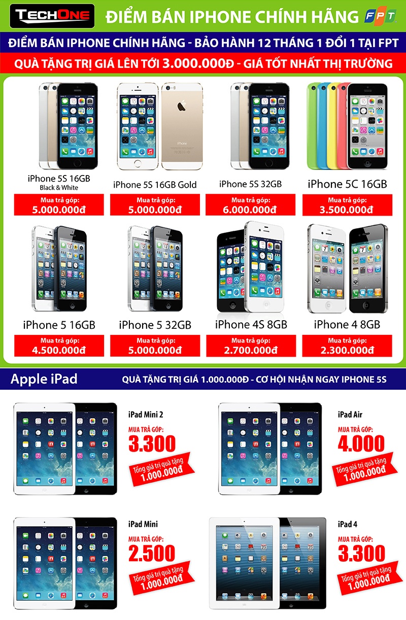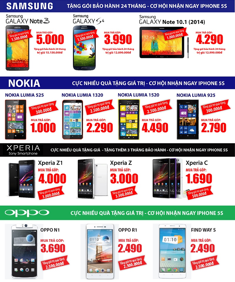 Bạn muốn mua những sản phẩm điện thoại di động, máy tính bảng để dành tặng tặng một nửa thế giới, nhưng bạn không muốn sử dụng hết khoản tiền tiết kiệm vì vẫn muốn để dành cho những kế hoạch quan trọng khác hơn như chi phí sinh hoạt hàng ngày, chi phí học hành, mua nhà… Và hình thức mua trả góp là cách nhanh nhất để bạn có thể thực hiện điều bạn mong muốn sở hữu sản phẩm công nghệ mới nhất hệ thống siêu thị di động TechOne sẽ giúp bạn thực hiện điều đó với thủ tục nhanh chóng lấy máy ngay, lãi suất thấp, miễn một tháng không đóng Lãi suất và vốn cùng với đó là rất nhiều khuyến mại ưu đại kèm thèo khi mua iPhone 5S, iPad Air, Galaxy Note 3, Xperia Z1, OPPO N1 …