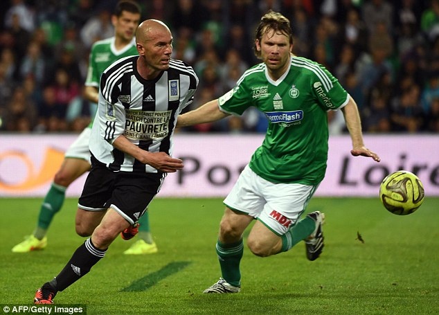 | Đối thủ của Zidane và Ro béo là đội ngôi sao Saint-Etienne. Dù đã bước sang tuổi tứ tuần, những bước chạy của huyền thoại bóng đá Pháp vẫn rất linh hoạt. |