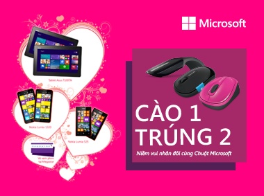 “Cào 1 trúng 2” là thông điệp chủ đạo mà Microsoft muốn gửi tới tất cả khách hàng tham dự chương trình với mong muốn gia tăng niềm vui và cơ hội nhận quà tặng cho người dùng. Mọi khách hàng khi mua sản phẩm từ các đại lý được chỉ định tại Hà Nội và TP.Hồ Chí Minh của Microsoft đều có cơ hội trúng các giải thưởng giá trị như cặp máy tính bảng Asus T100TA, cặp điện thoại Nokia Lumia 1320, cặp điện thoại Nokia Lumia 525 và vé xem phim tại MegaStar.
