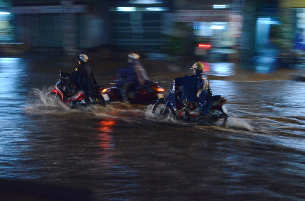 | Nhiều đoạn nước ngập quá nửa bánh xe máy. |