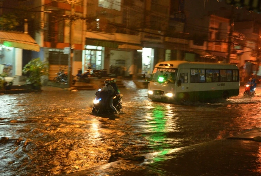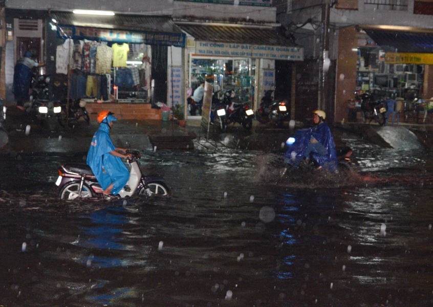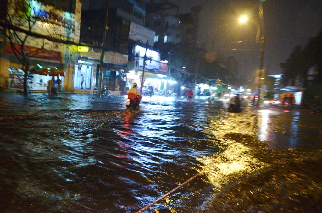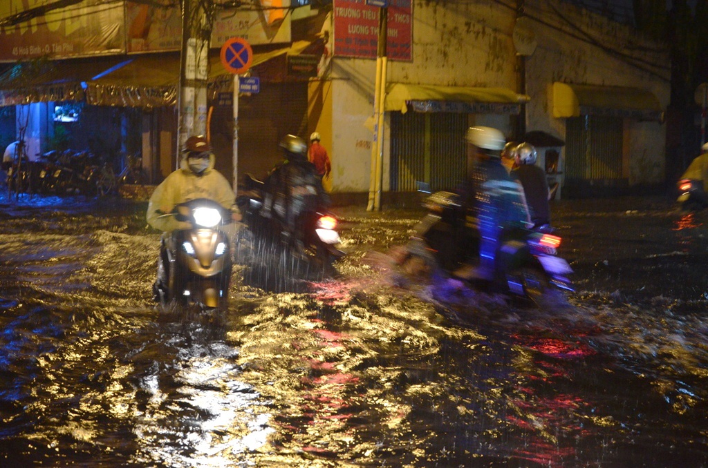 | Đường Hòa Bình (Q.11) cũng bị ngập khá nặng. |