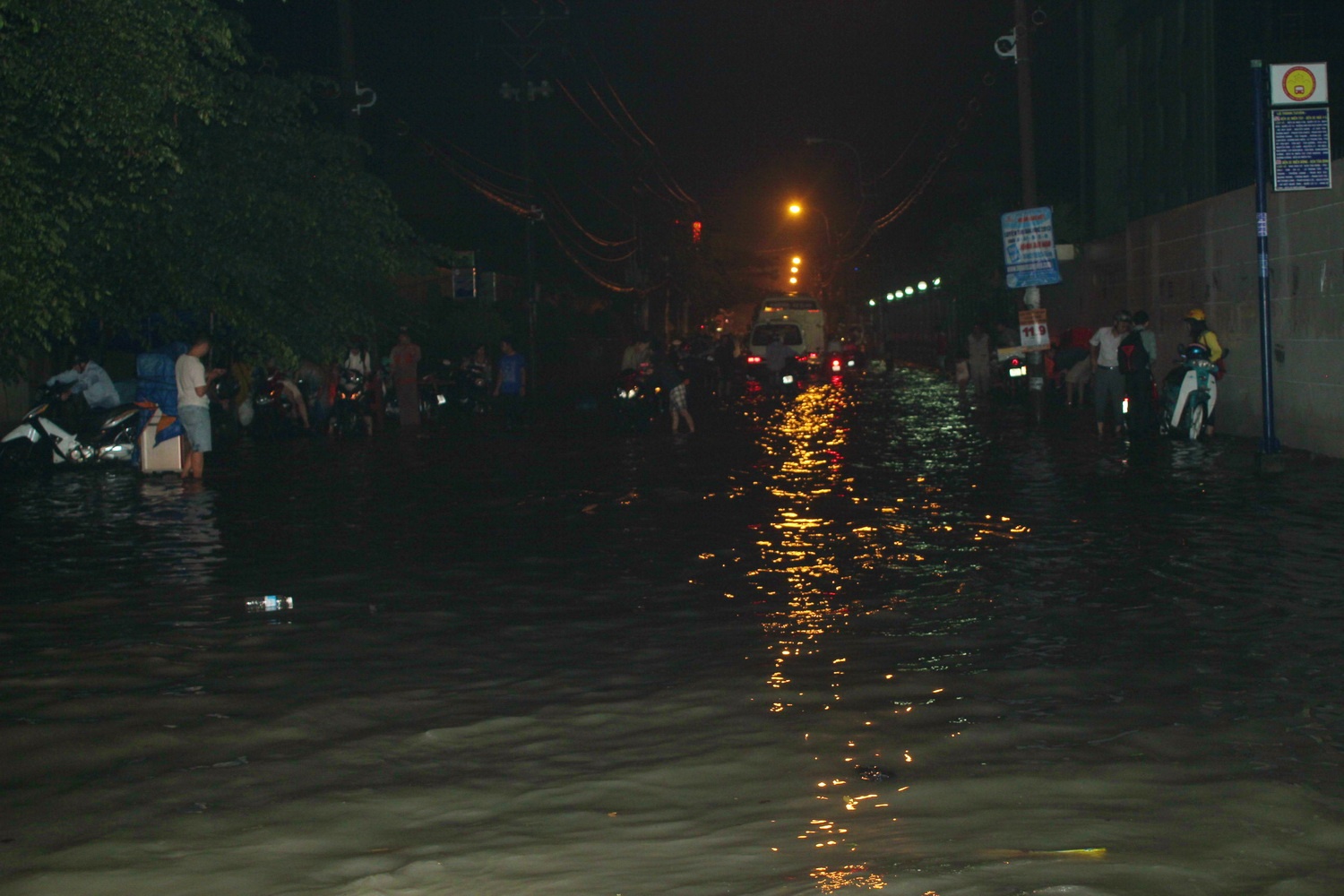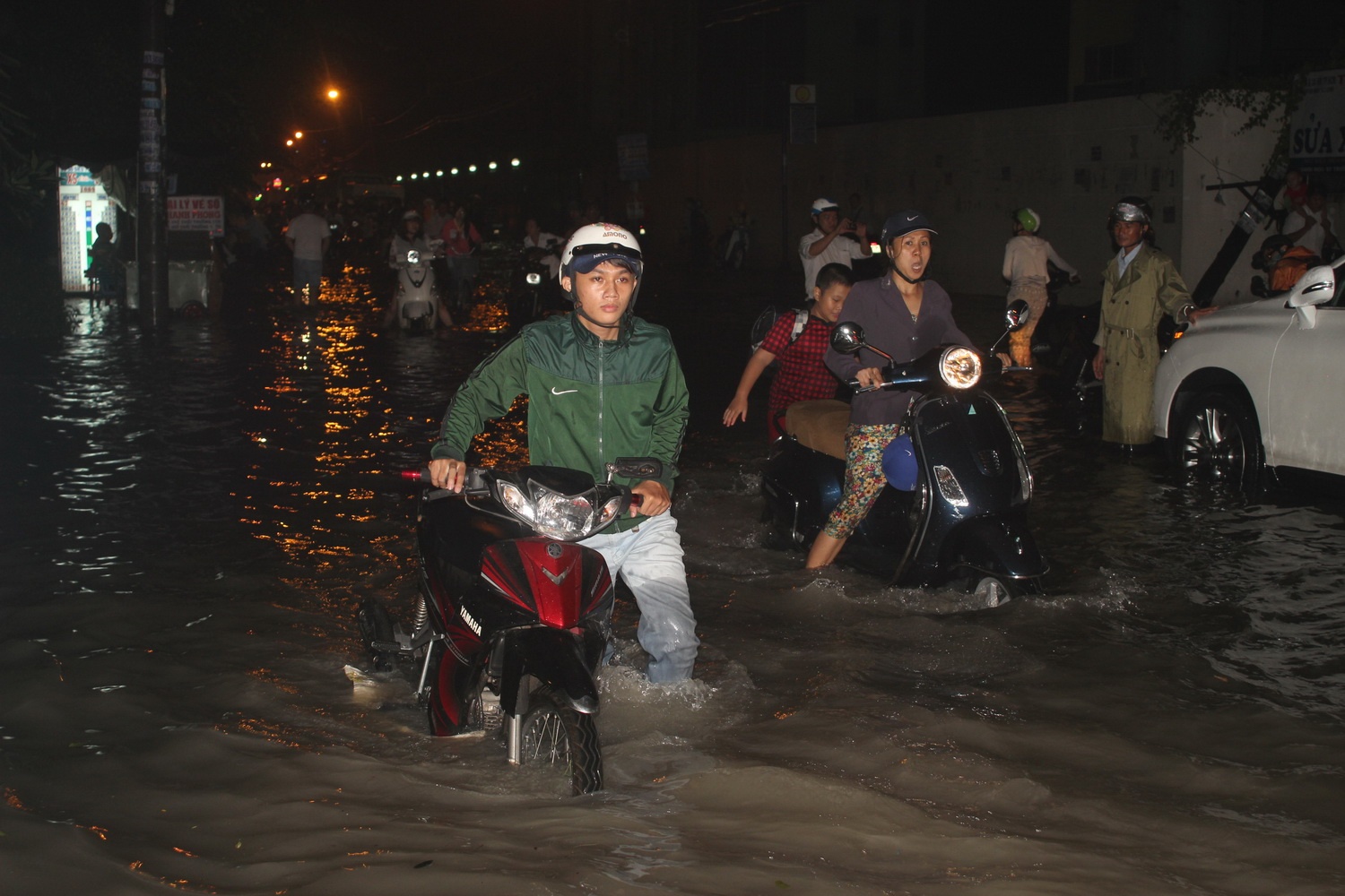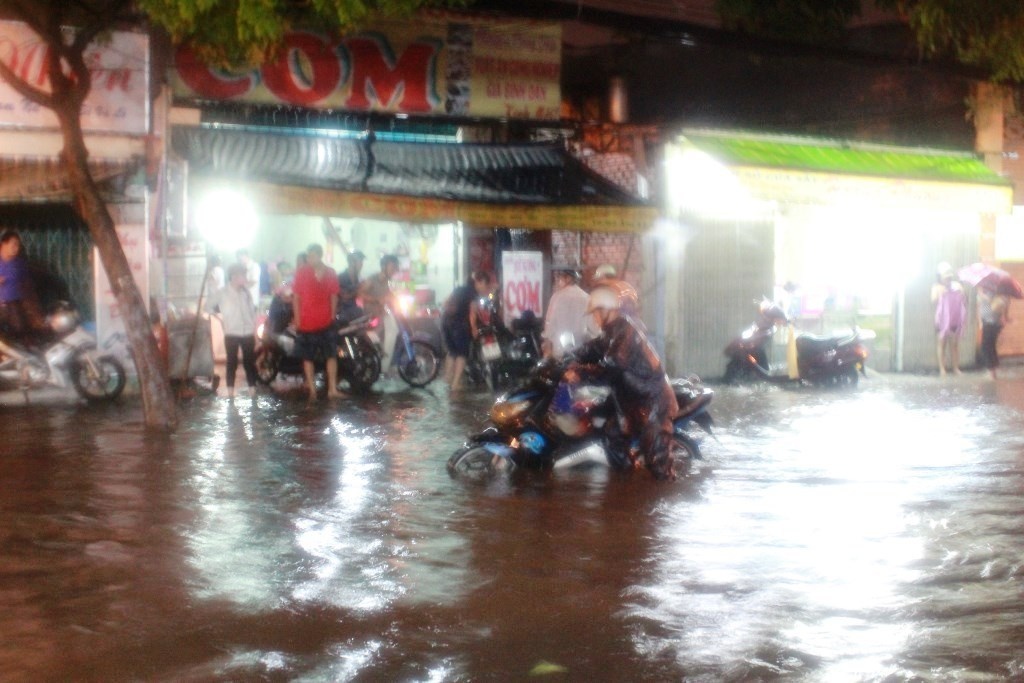 Cơn mưa từ 16h chiều kéo dài đến tối 10/9 trên địa bàn Q.Tân Bình, 12 đã làm nhiều tuyến đường bị ngập nặng như Phan Huy Ích, Nguyễn Văn Quá, Phạm Văn Bạch, đoạn gần cầu Chợ Cầu đường Quang Trung (Q.12), Âu Cơ, Đồng Đen, Hồng Lạc (Q.Tân Bình)... Lúc cao điểm, nước ngập hết bánh xe máy khiến giao thông ở các đoạn đường này bị tê liệt, nước tràn vào nhà dân, công ty...