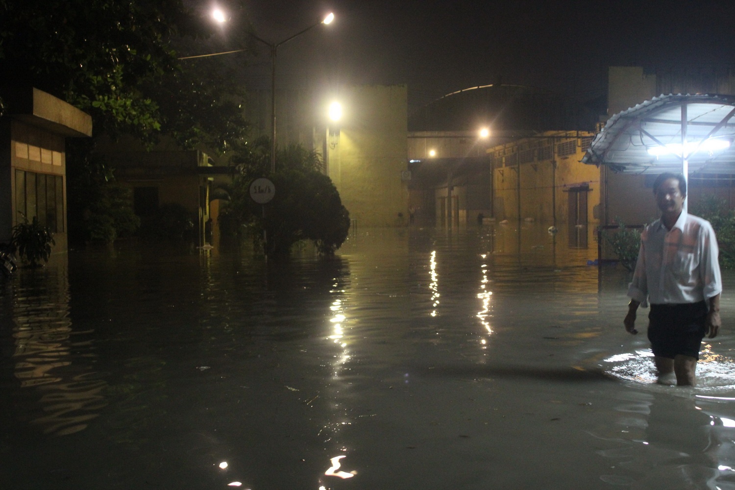Biển nước trong sân một công ty trên đường Phan Huy Ích.