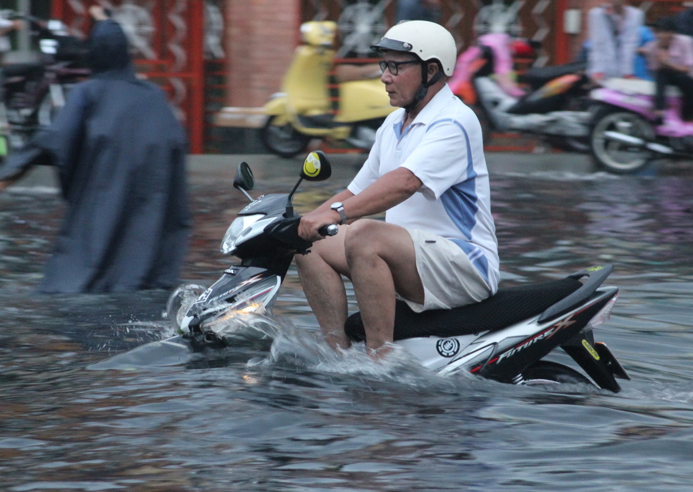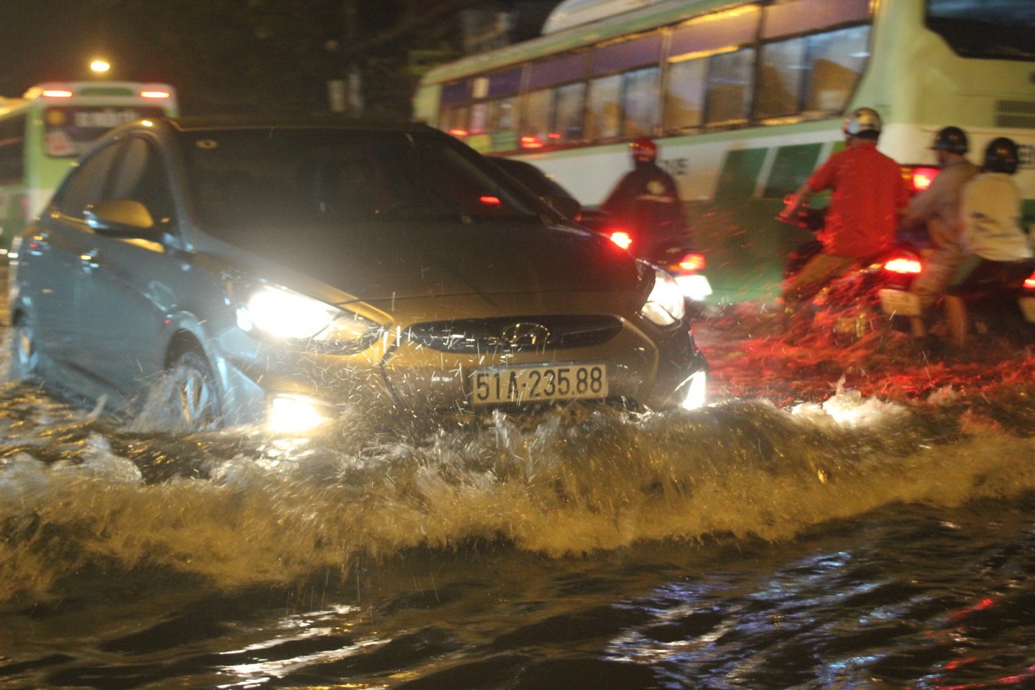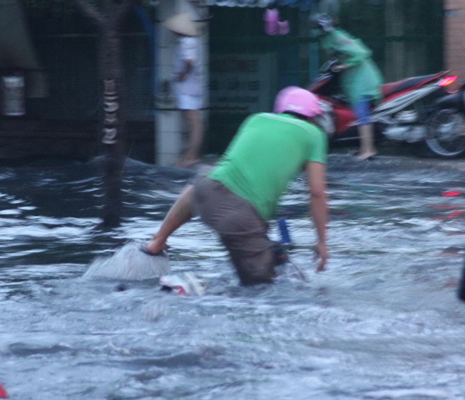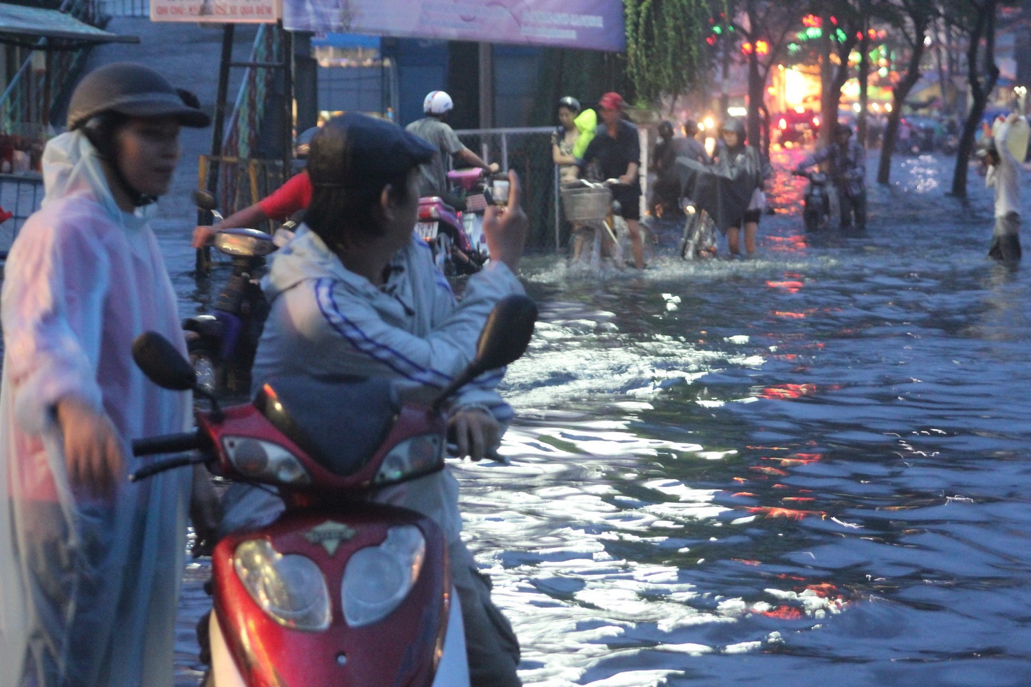 | Đến hẹn lại lên, sau cơn mưa lớn nhiều tuyến đường ở Sài Gòn nhanh chóng biến thành sông. |