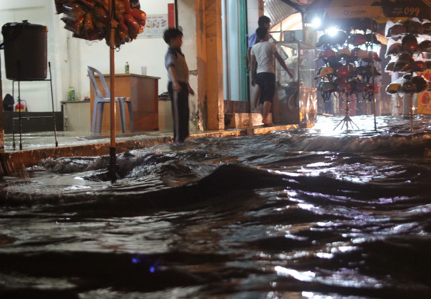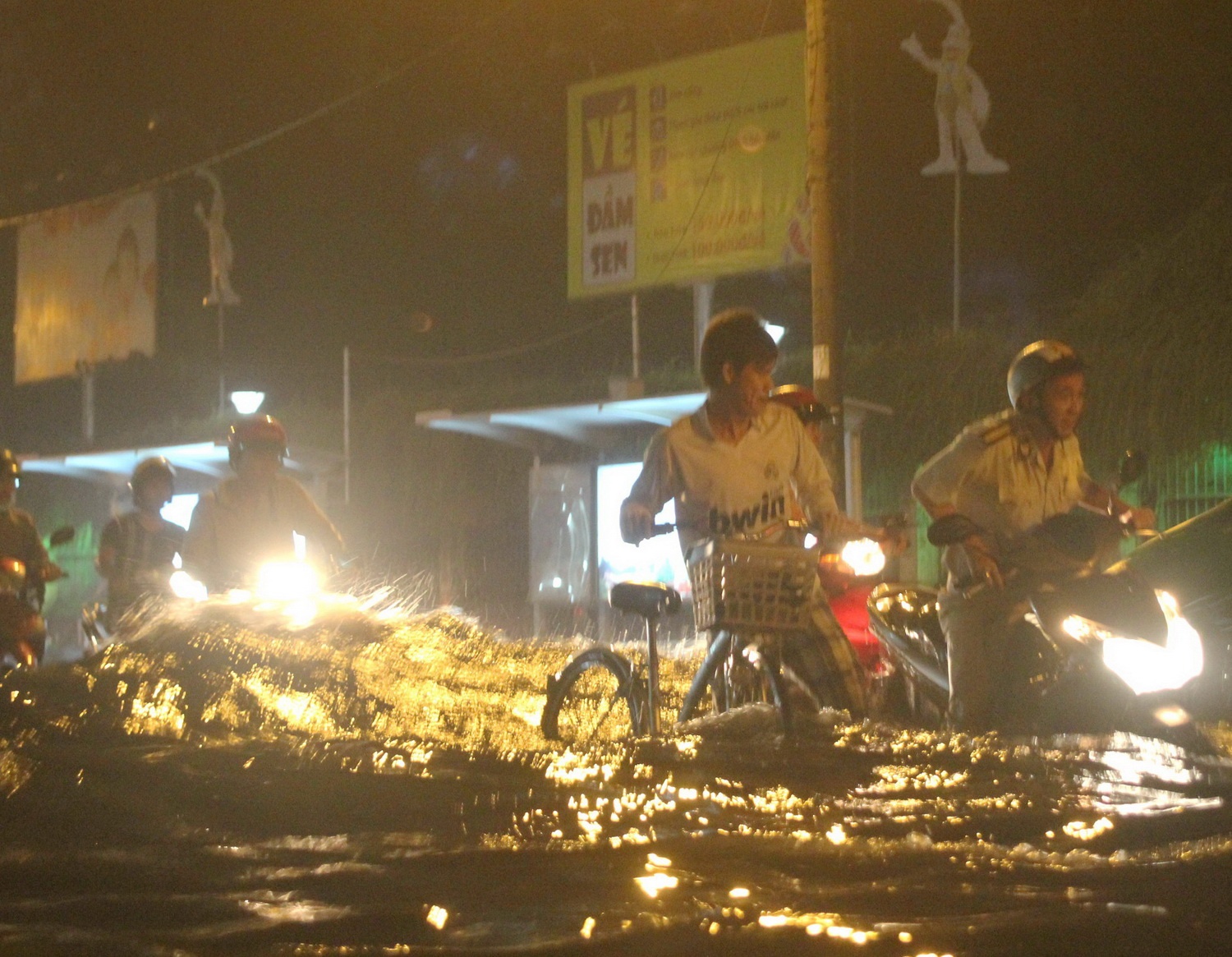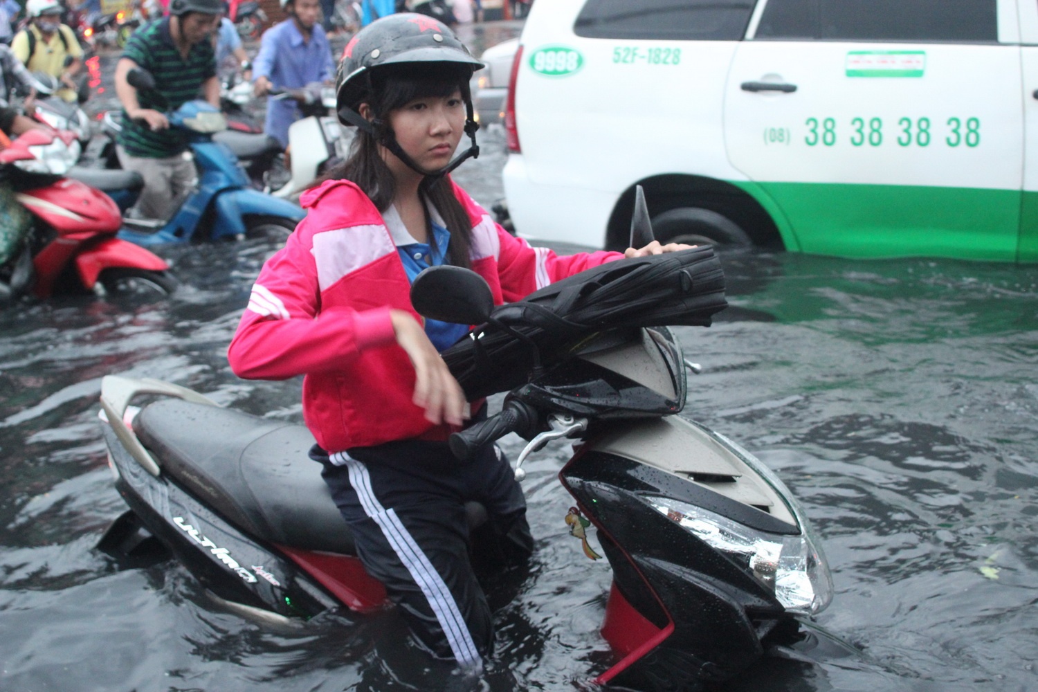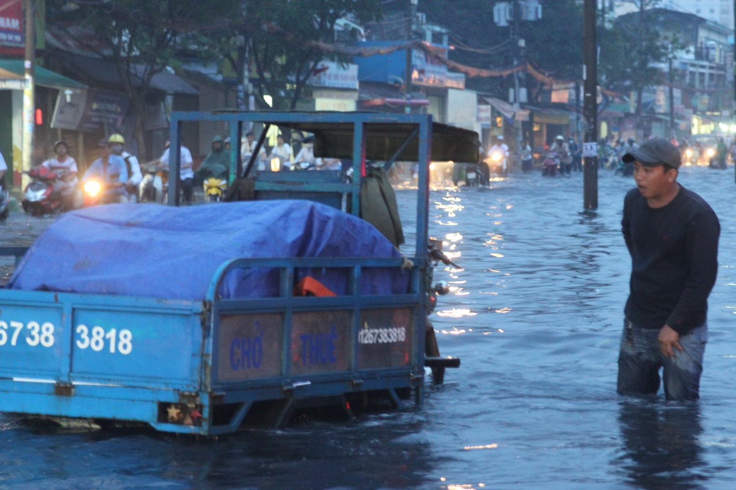 | Đến hẹn lại lên, sau cơn mưa lớn nhiều tuyến đường ở Sài Gòn nhanh chóng biến thành sông. |