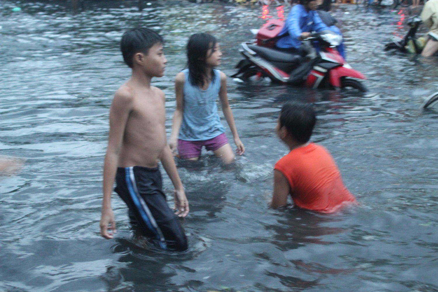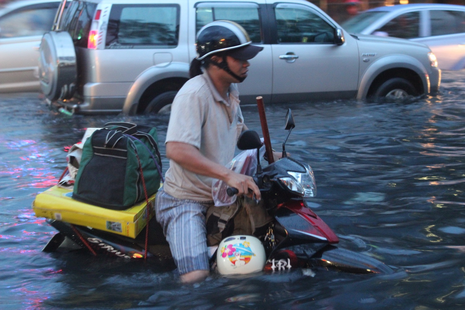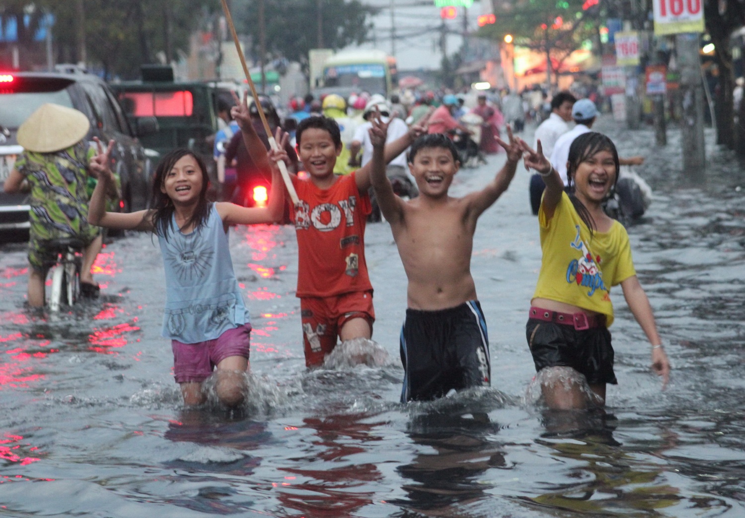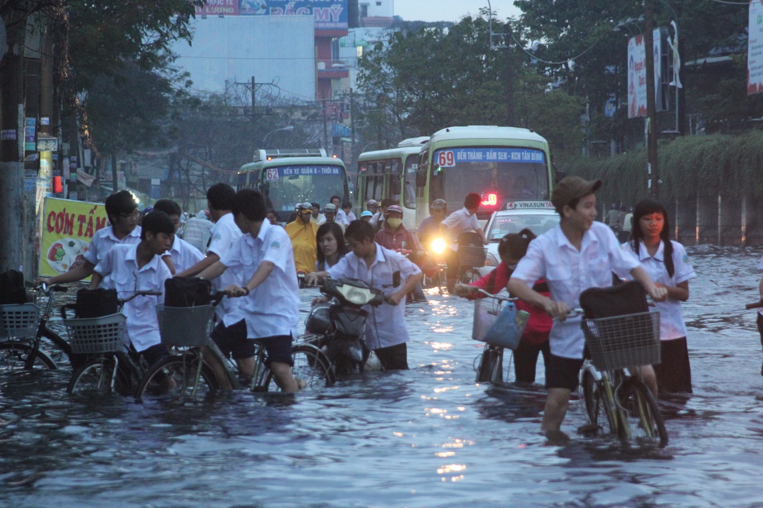 | Đến hẹn lại lên, sau cơn mưa lớn nhiều tuyến đường ở Sài Gòn nhanh chóng biến thành sông. |