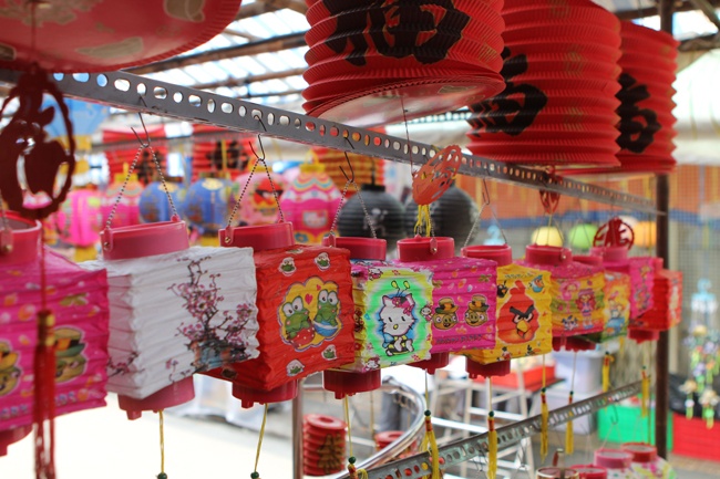 | Lồng đèn Trung Quốc được bày bán ở một góc vắng khách. |