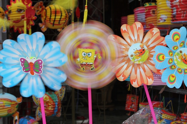 | Những chiếc chong chóng đồ chơi xinh xắn cũng cuốn hút người xem. |