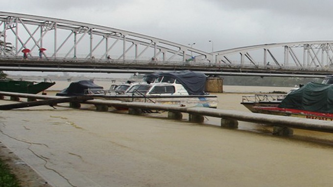 Đến trưa 7/11, thượng nguồn tỉnh Thừa Thiên - Huế vẫn mưa lớn, hai nhà máy thủy điện lớn nhất tỉnh đồng loạt tăng lưu lượng xả lũ. Nước lũ đổ về sông khiến mực nước trên sông Hương, sông Bồ lên nhanh, xấp xỉ mức báo động 3.