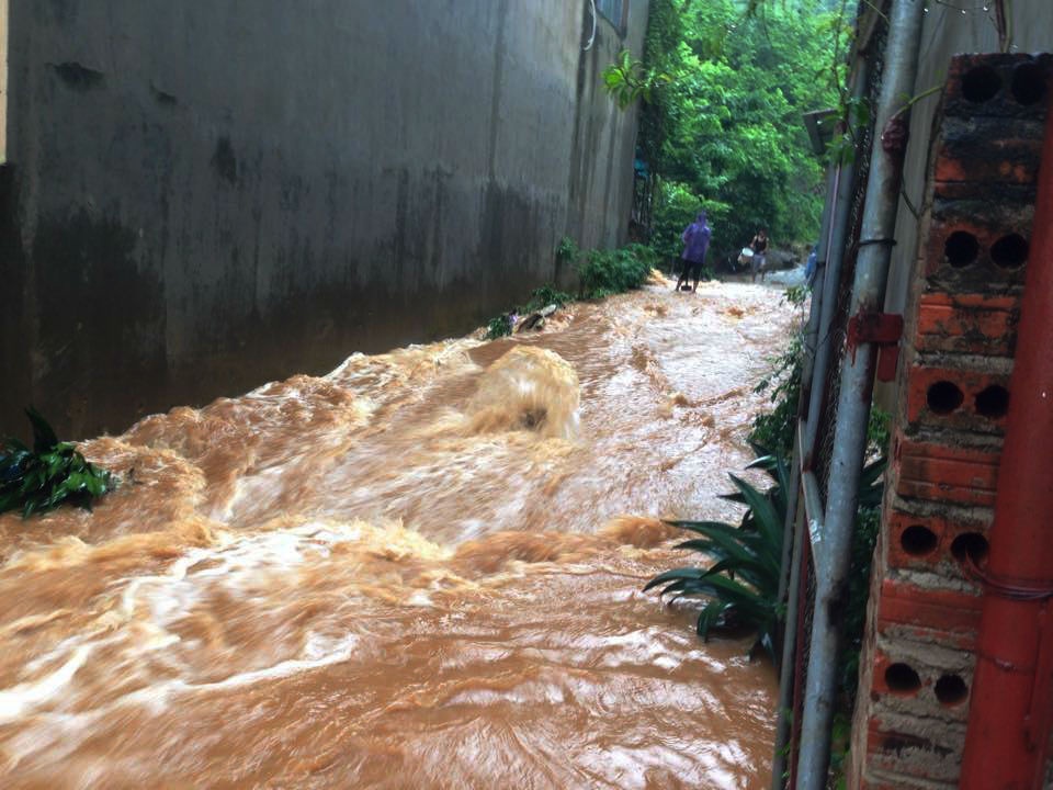 | "Nước lũ chảy xối xả ở sông Thương, tràn vào nhiều hộ gia đình ở trung tâm thị trấn cuốn đi nhiều tài sản, đồ vật của người dân. Cảnh tượng tương tự lũ quét, ngập úng ở Quảng Ninh. Nếu trời tiếp tục mưa lớn, không biết chuyện gì sẽ xảy ra", anh Vương nói. Ảnh: Facebook Gửi Kính. |