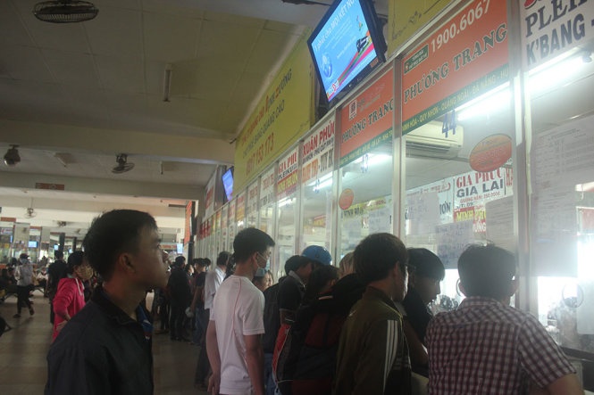 Không mua được vé xe qua mạng, một số người dân đã ra quầy vé nhà xe Phương Trang tại bến xe Miền Đông để mua trực tiếp vào ngày 17/1 |