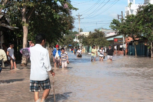 | Theo người dân nơi đây, thì rất lâu rồi khu vực mới bị ngập sâu như vậy. |