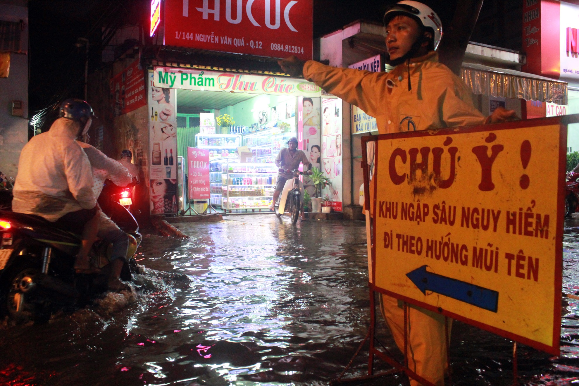 | Theo ghi nhận của Zing.vn, cơn mưa như trút đã làm nhiều tuyến đường không thoát nước kịp, bị ngập úng nghiêm trọng. Những tuyến đường bị ngập nặng như đường Tân Hóa (quận 6), Kinh Dương Vương, Phan Anh, Hồng Bàng (quận 6, Bình Tân), Nguyễn Văn Quá, Song Hành QL22 (quận 12)... Ảnh: Lê Quân. |