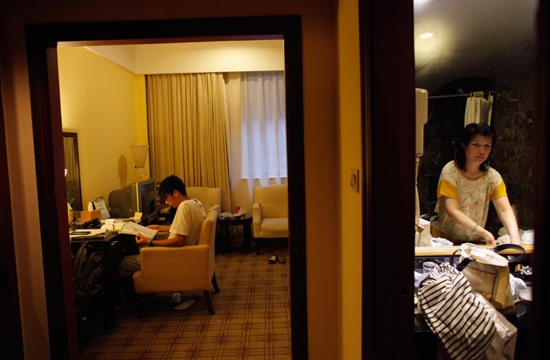 | Một nam sinh tranh thủ ôn bài khi đang nghỉ ngơi tại khách sạn gần địa điểm thi. Họ phải học đến phút cuối nhằm chắc chắn đỗ đại học. Trước mùa thi, phụ huynh cũng căng thẳng không kém thí sinh. Ảnh: Reuters. |