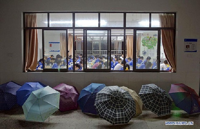 | Học sinh trong một trường trung học ở thành phố Hợp Phì, tỉnh An Huy, tích cực ôn luyện, chuẩn bị cho mùa tuyển sinh của các trường đại học. Không chỉ ôn thi tập trung trên trường, họ còn thức suốt đêm để học tại ký túc xá. Ảnh: Reuters. |