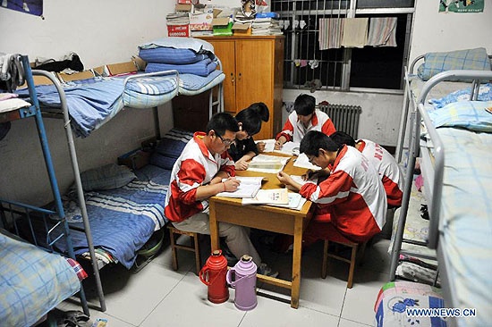 | Học sinh tập trung ôn thi trong ký túc xá ở thành phố Ngân Xuyên, khu tự trị Ninh Hạ. Gaokao được đánh giá là một trong những kỳ thi khắc nghiệt nhất thế giới. Ảnh: Xinhua. |