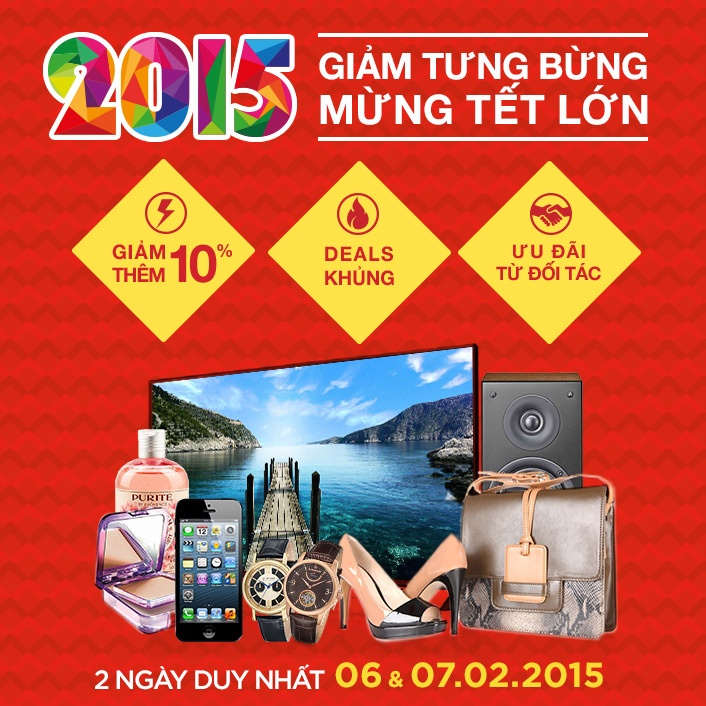 Hưởng ứng chương trình mừng Tết Ất Mùi 2015, Lazada tiếp tục triển khai đợt giảm giá Giảm tưng bừng - Mừng Tết lớn cuối cùng kéo dài từ ngày 6/2 đến ngày 7/2 với nhiều hoạt động phong phú và hấp dẫn. Cụ thể: