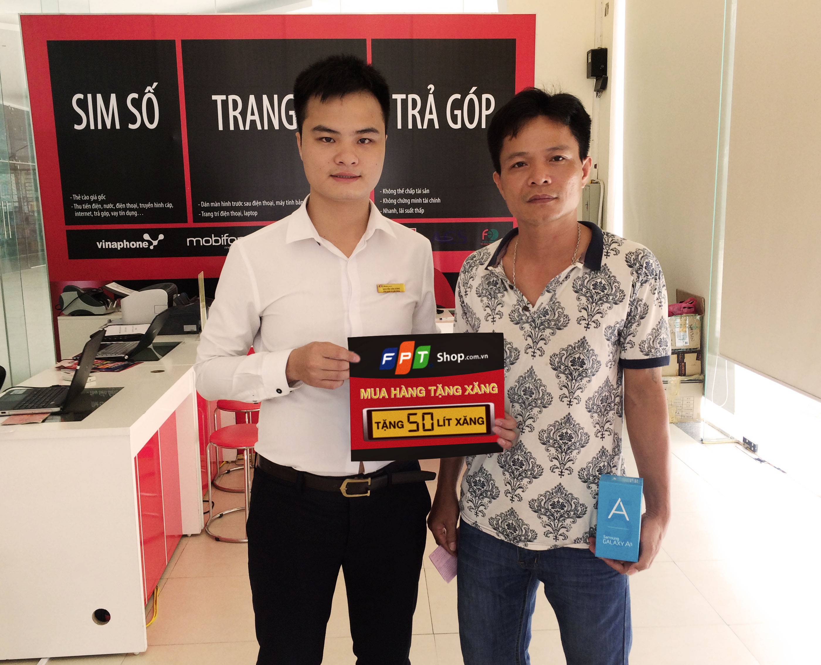 Chị Vũ Thanh Phượng, mua Galaxy A5 Black trị giá 7,99 triệu đồng tại FPT Shop 16 Trần Tất Văn, Hải Phòng, được tặng 50 lít xăng. Chị thích thú chia sẻ: “Đây là lần đầu tiên tôi đi mua điện thoại mà lại được tặng xăng, không những thế còn được tặng đến 50 lít. Về đến nhà, tôi có kể lại với gia đình thì ai cũng đều cảm thấy bất ngờ trước chương trình này”.