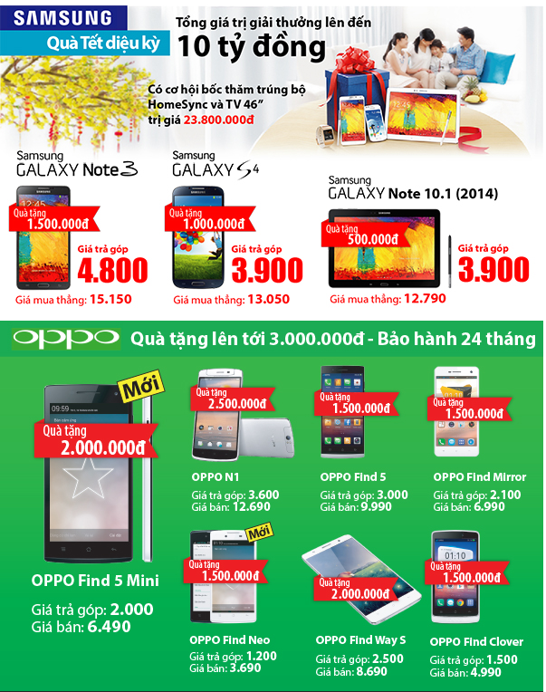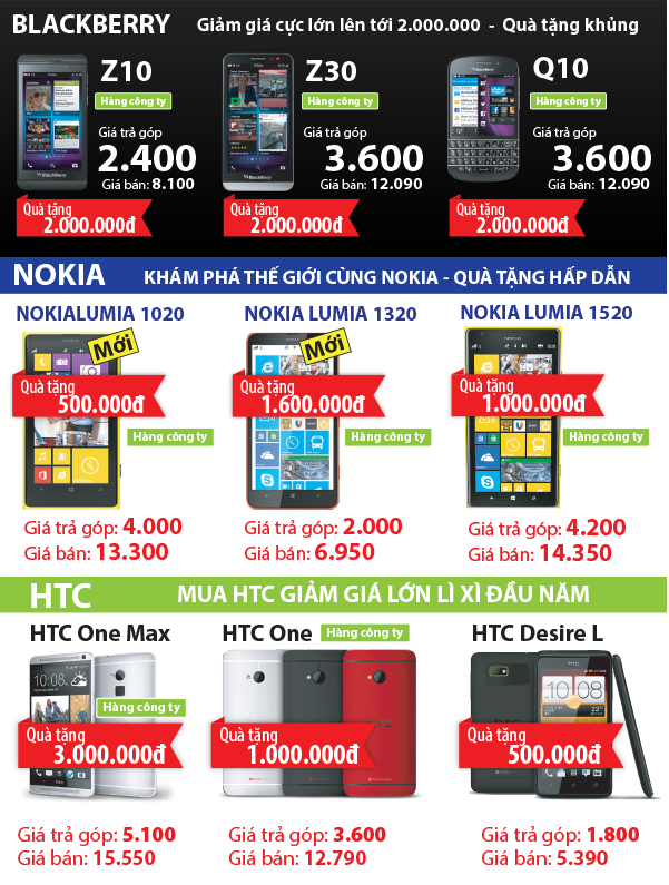 Bảng giá sản phẩm trả góp: