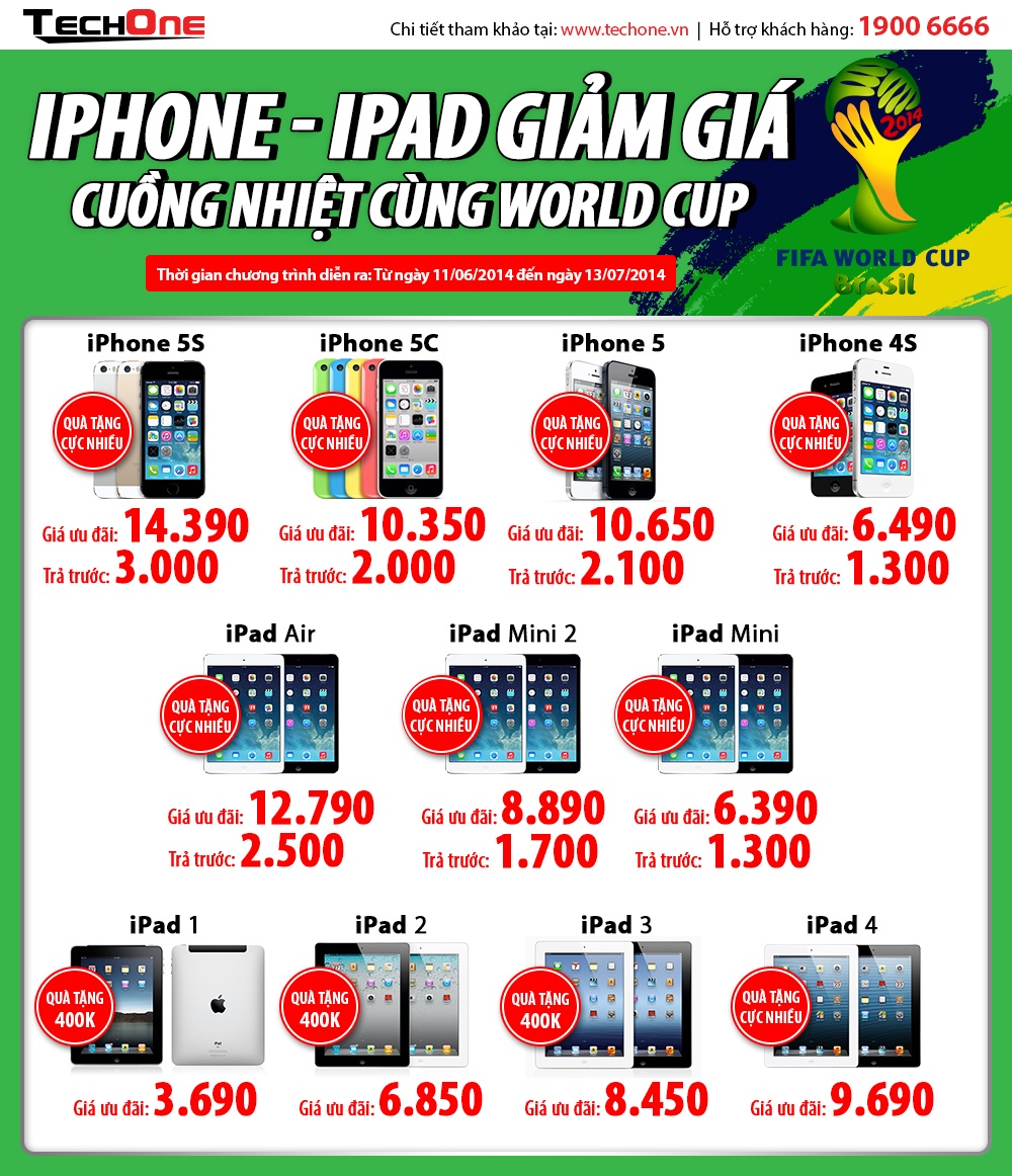 - LG G3 màn hình siêu rộng Quad HD 5,5 inch, độ phân giải 2K (1440 x 2560 px) gấp 1,8 lần chuẩn full HD thông thường, Snapdragon 801 lõi tứ, tốc độ 2,5 GHz, RAM 3 GB, bộ nhớ trong 32 GB. Giá TechOne: 14.590.000 đồng (giá niêm yết: 15.990.000 đồng) cùng bộ quà tặng trị giá 3 triệu (trả góp 2.800.000 đồng).