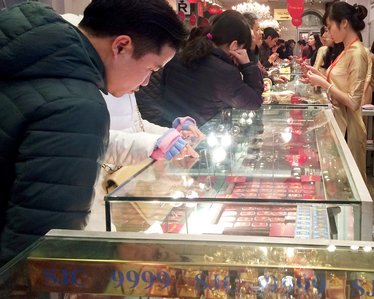 Nhân viên cửa hàng vàng Kim Vinh ở chợ Thiếc cũng nói, từ ngày mở cửa khai trương sau Tết đến nay, phần lớn khách mua vàng đều chọn loại nhẫn và nữ trang. Lượng giao dịch tăng mạnh do người dân xung quanh khu vực này có quan niệm mua vàng lấy may sau Tết. Nhiều gia đình cũng dùng tiền lì xì để mua vàng cho con, nhưng khách mua rất hạn chế.