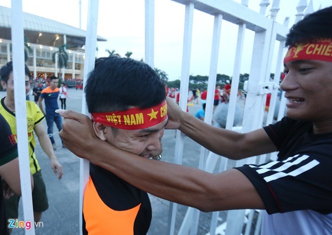 Tuy nhiên việc chui qua hàng rào chưa thể vào được sân. Những khán giả chui này phải qua các cửa soát vé do lực lượng cảnh sát cơ động kết hợp với bảo vệ sân vận động trực chốt.