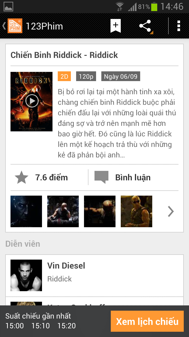 Đánh dấu phim yêu thích để dễ dàng theo dõi lịch chiếu, chia sẻ phim hay với bạn bè qua Facebook, email hay SMS.
