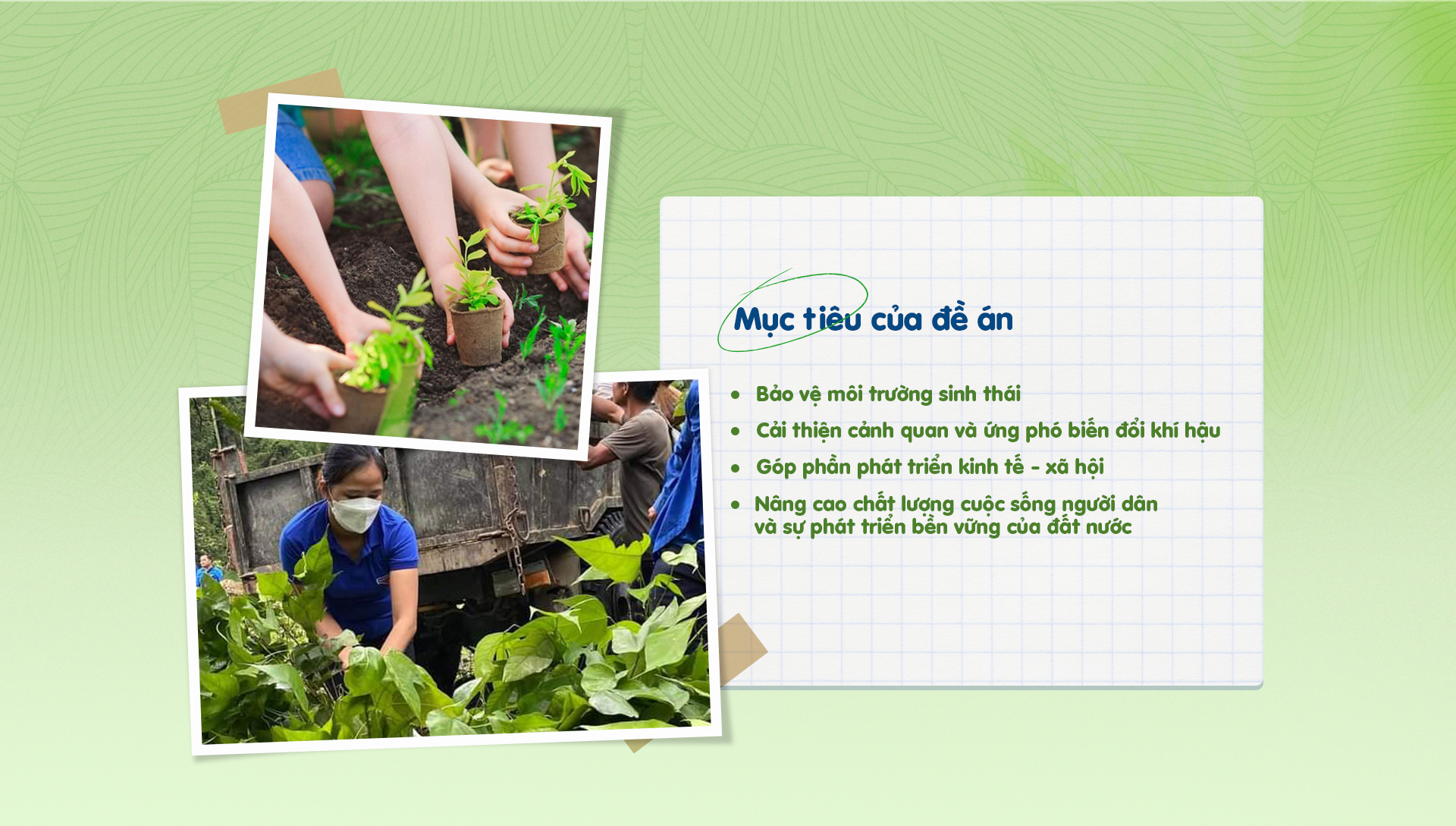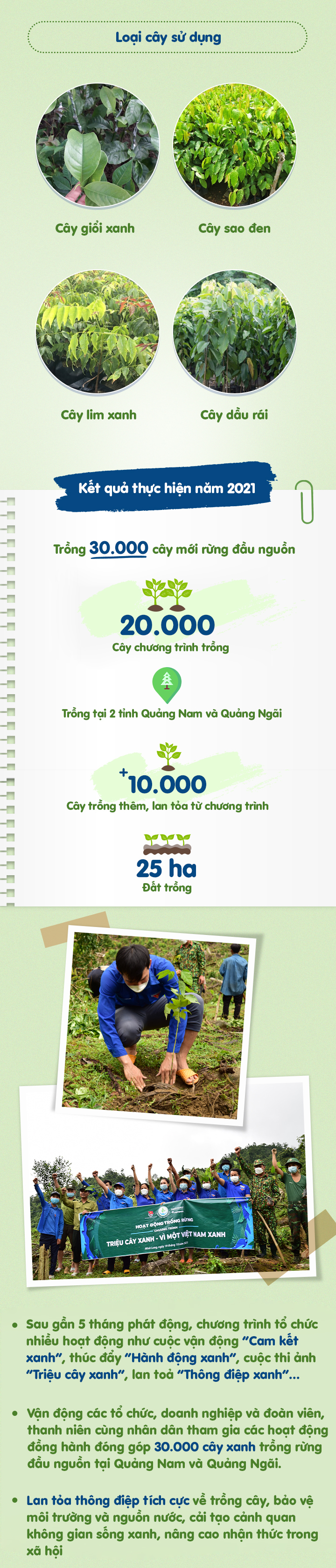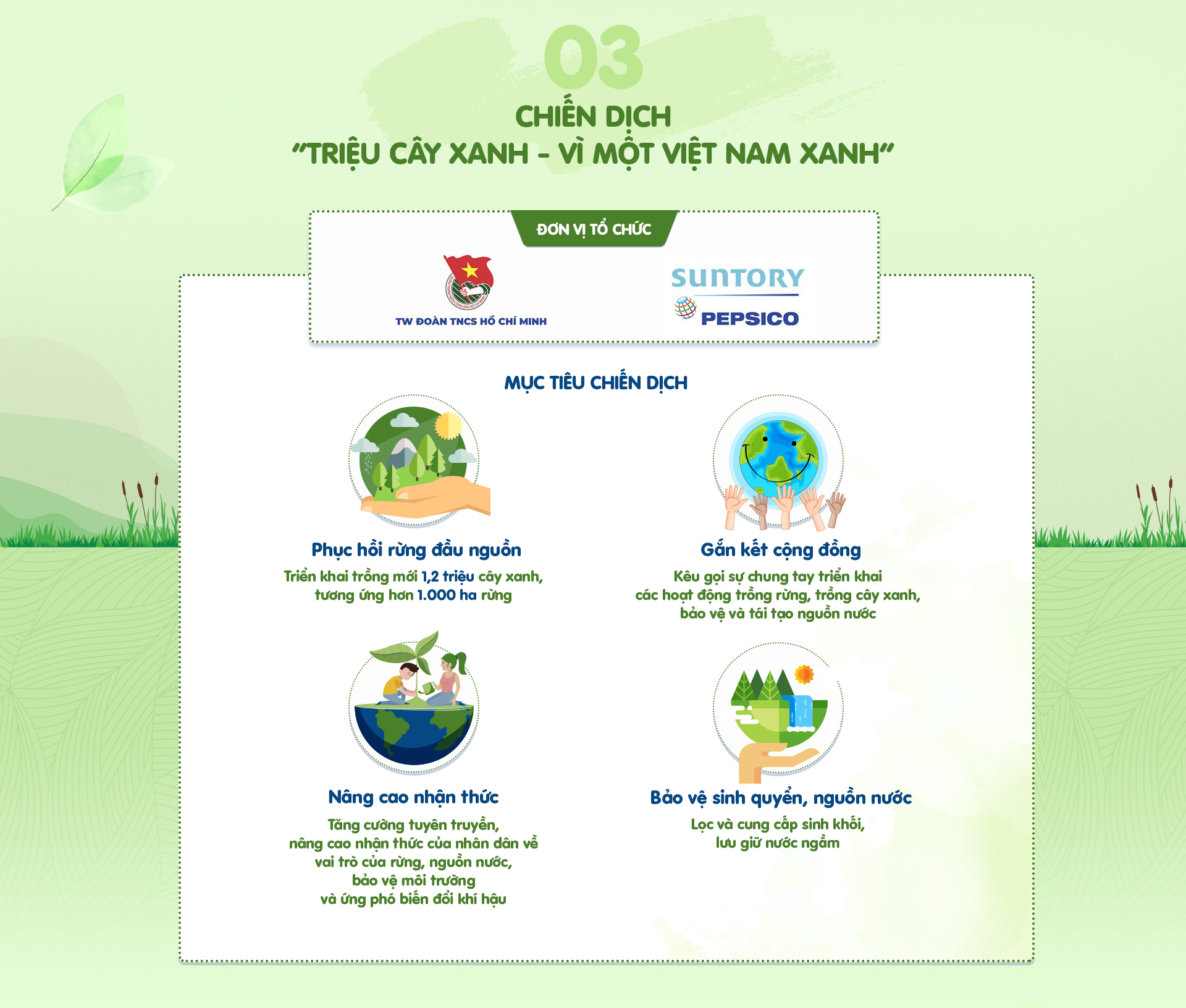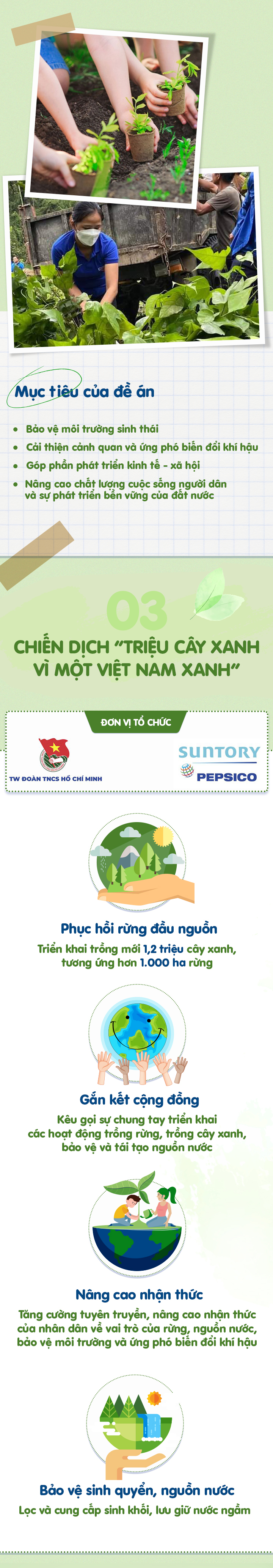 Chương trình “Triệu cây xanh - Vì một Việt Nam xanh” được tổ chức nhằm góp phần phục hồi rừng đầu nguồn, bảo vệ nguồn nước và môi trường, từ đó nâng cao nhận thức của người dân.