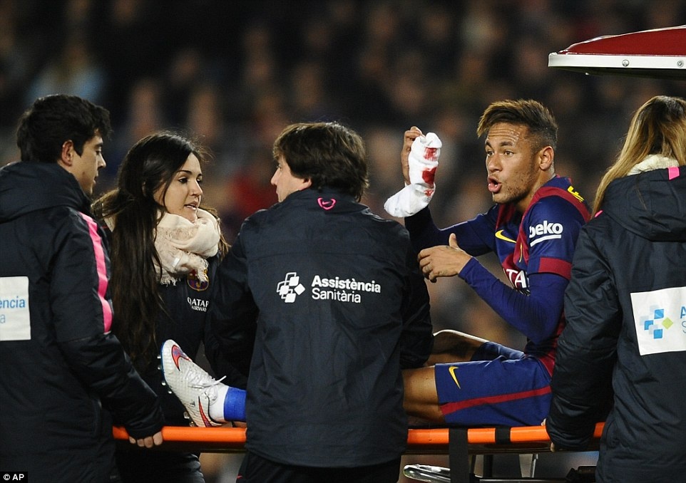 | Sau khi rời sân bằng cáng để chữa trị, Neymar tiếp tục trở lại thi đấu. |