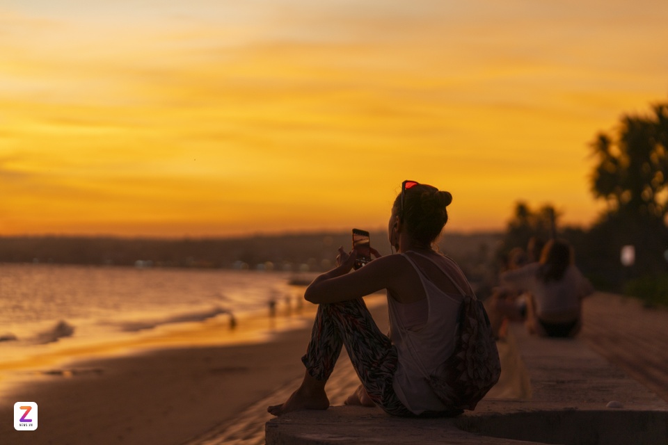 Nữ du khách quốc tế tận hưởng hoàng hôn rực rỡ bên bờ biển Mũi Né hồi tháng 3. Ảnh: Linh Huỳnh. |