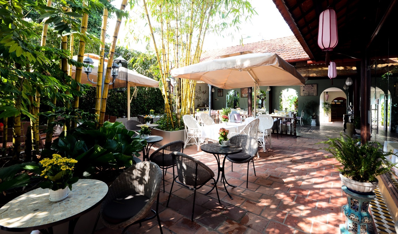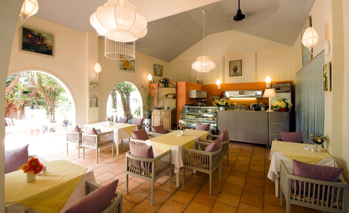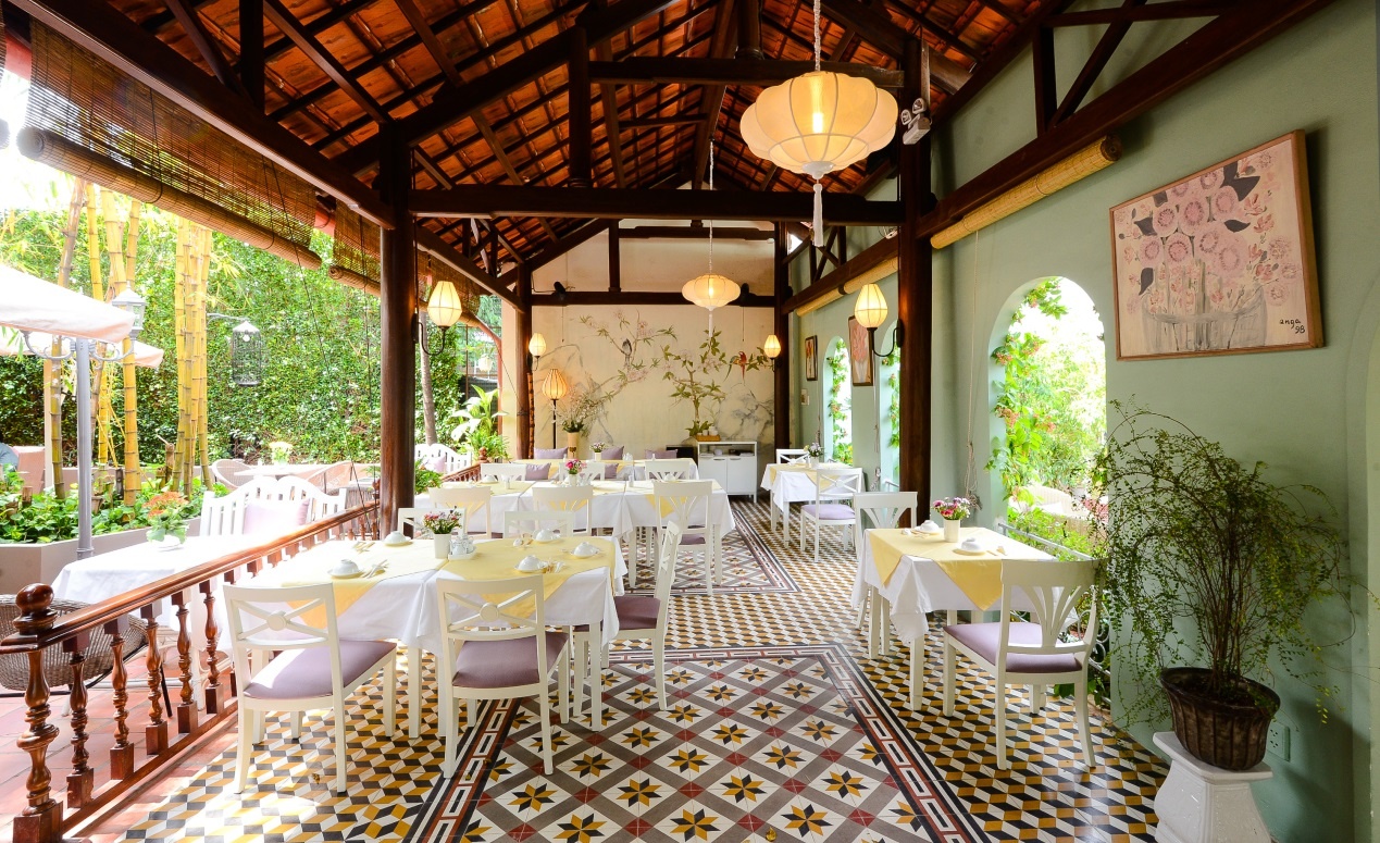 | Cùng với sự chăm chút, kinh nghiệm có tính mỹ thuật của người sáng lập sẽ mang lại một màu sắc ấm cúng khi thực khách thưởng thức các buổi ăn sáng, trưa, tối cùng gia đình, bạn bè trong khuôn viên đầy cây xanh tự nhiên giữa lòng thành phố . |