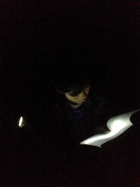 | Páo soi đèn pin học bài. |
