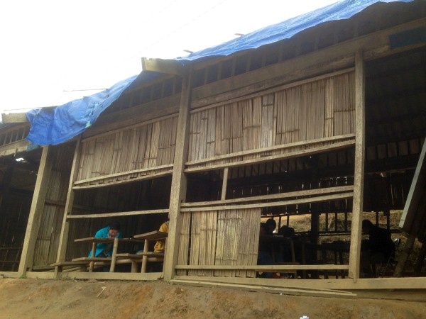 Do là nhà tạm, nên nột năm học có đến vài lần nhà trường phải vận động phụ huynh vác cây que đến để sửa chữa. Ban đầu thì lợp tôn xi măng, còn nay đến cả bạt phủ mái cũng rách bươm.