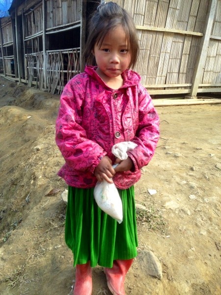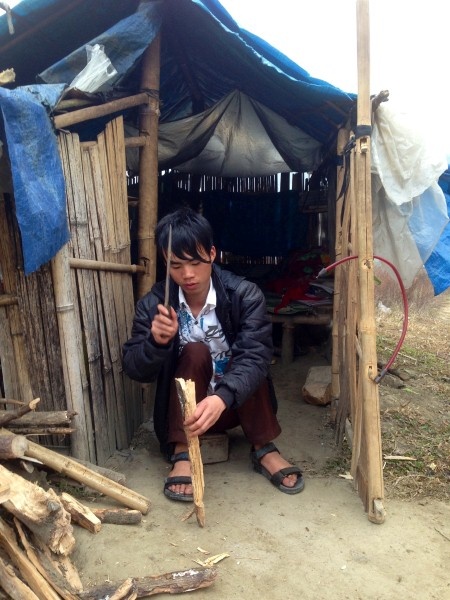 | Em Phùng Văn Páo, trước túp lều ở gần trường học. |