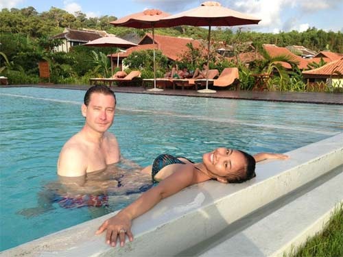 | Bay từ châu Âu về để trải qua thời khắc năm mới 2014 tại Đà Nẵng cùng Thu Minh sau đó phải bay ngược lại để lo công việc. |