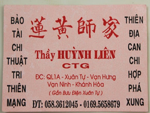 | “Thầy” Huỳnh Liên in cả danh thiếp, trên đó ghi “Thầy Huỳnh Liên - CTG” (ý viết tắt của Chiêm tinh gia). |