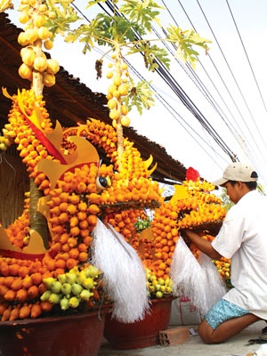 Ông Nguyễn Phúc Nhân, trồng hoa ở làng hoa Long Tuyền (quận Bình Thuỷ, Cần Thơ) đã rao tìm khách hàng sỉ từ hơn tuần trước cho hơn 5.000 giỏ hoa Tết các loại. Theo ông Nhân, “ôm” hàng tới Tết để bán lẻ sẽ lời nhiều hơn, nhưng phải chạy chợ rất nhọc công. Còn ông Phan Văn Trọng (xã Hưng Khánh Trung B, Chợ Lách) đã chọn cách phô diễn nghệ thuật kết hình kiểng thú bằng trái đào tiên. Ngoài mô hình con ngựa, ông Trọng còn thiết kế cả con rồng quấn quanh gốc cây đu đủ. Theo ông Trọng, cây đu đủ mang trái màu vàng, trái đào tiên cũng màu vàng… Tất cả đều là may mắn, nhưng giá mềm hơn kiểng tắc.
