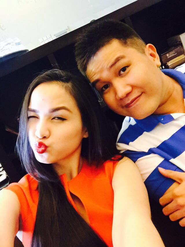 | Dương Mỹ Linh vui vẻ bên Bằng Kiều. |