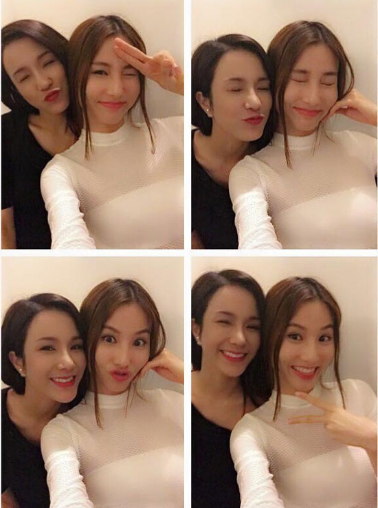 | Tạo hình hài hước của đôi bạn Diễm My 9X và Diệp Lâm Anh. |