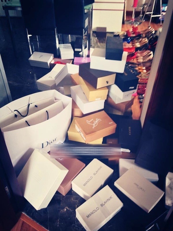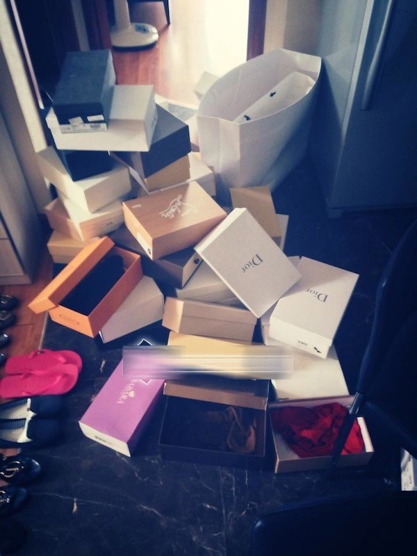 | Cô đăng tải mớ hỗn độn hàng hiệu trong nhà mình khoe lên Facebook. |