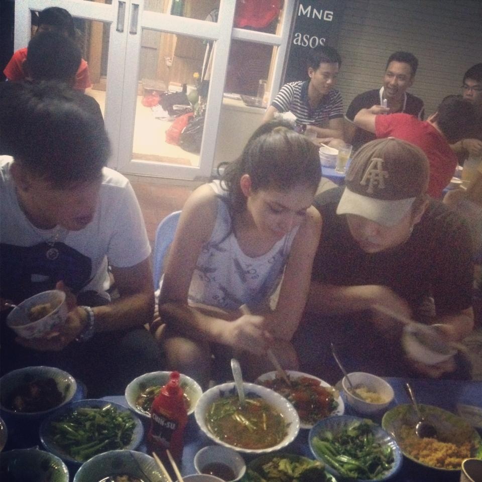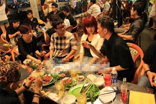 | Khắc Tiệp, Thái Hà cùng ăn uống ở quán bình dân. |