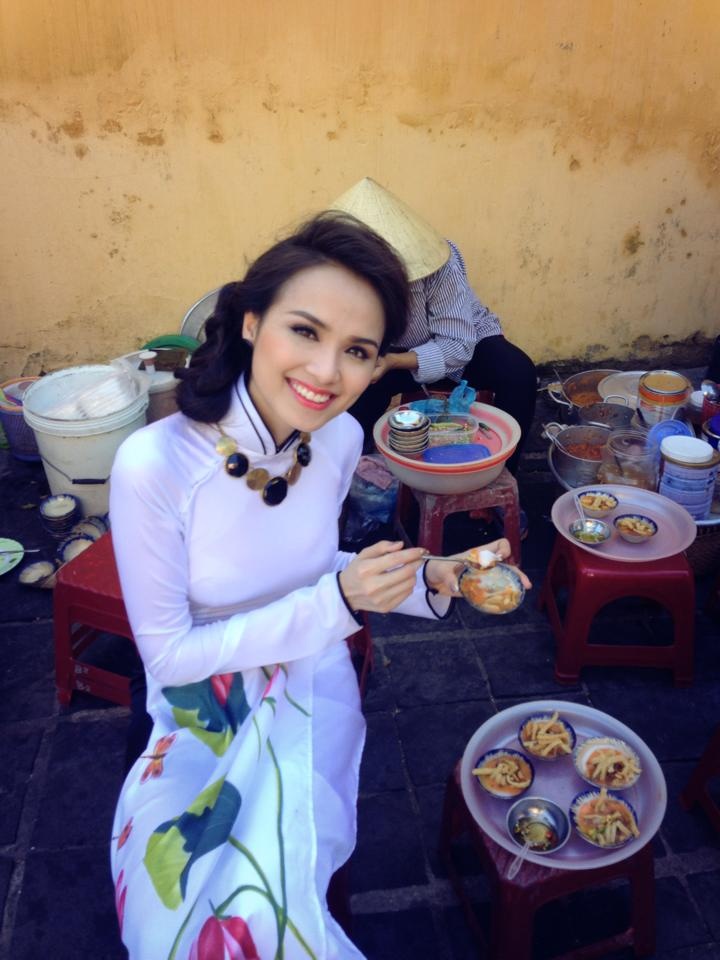| Món ăn đường phố được người đẹp yêu thích khi cô đến phố cổ Hội An. |